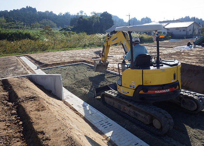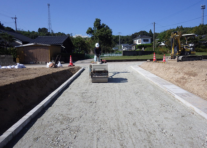 道路などの地盤面をアスファルト、コンクリート、砂、砂利、砕石などで舗装する工事です。